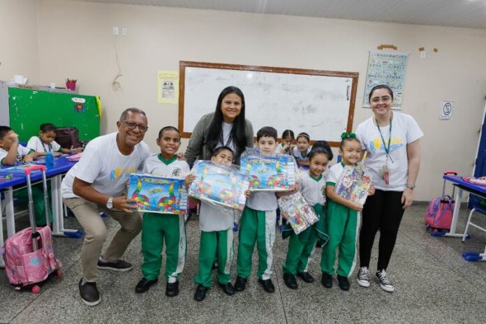 A equipe do programa Cidadão de Berço, da Escola do Legislativo Senador José Lindoso, realizado pela Assembleia Legislativa do Amazonas (Aleam), esteve, na quarta-feira (21/5), na Escola Estadual de Tempo Integral (EETI) Maria Arminda Guimarães de Andrade e na Escola Estadual General Sampaio, onde foram atendidas, ao todo, 64 crianças do 1º ano do Ensino Fundamental, que aprenderam, de forma lúdica, sobre cidadania, política e democracia.