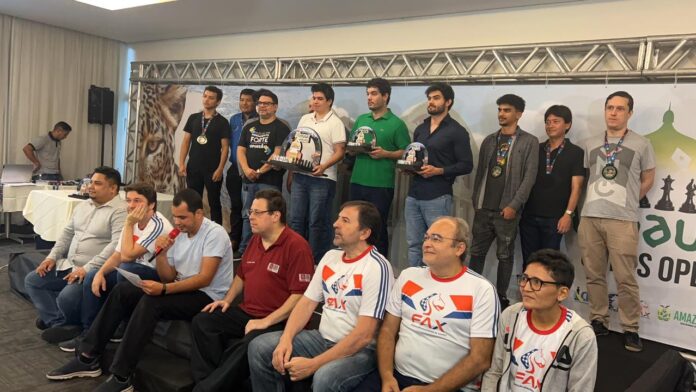 O torneio internacional Manaus Chess Open chegou ao fim neste domingo (16) no Novotel, Distrito Industrial, com brasileiros dominando o top 3. Renato Quintilano e Evandro Barbosa dividiram o pódio com o Grande Mestre argentino Sandro Mareco.