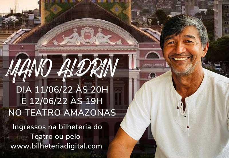 O cantor e compositor Otacílio dos Anjos mais conhecido como Mano Aldrin de Autaz Mirim foi convidado pelo músico e poeta Celdo Braga para participar do show de celebração dos seus 40 anos de arte nos dias 11 e 12 de junho, no Teatro Amazonas.