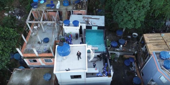 Três construções irregulares de alto padrão estão sendo demolidas nesta quinta-feira (26) na comunidade da Rocinha, na zona sul do Rio de Janeiro, durante uma operação conjunta entre o Ministério Público do Estado do Rio de Janeiro (MPRJ), a Secretaria Municipal de Ordem Pública (SEOP), a Polícia Militar do Estado do Rio de Janeiro (PMERJ), o Ministério Público do Estado do Ceará (MPCE) e a Polícia Civil do Ceará.