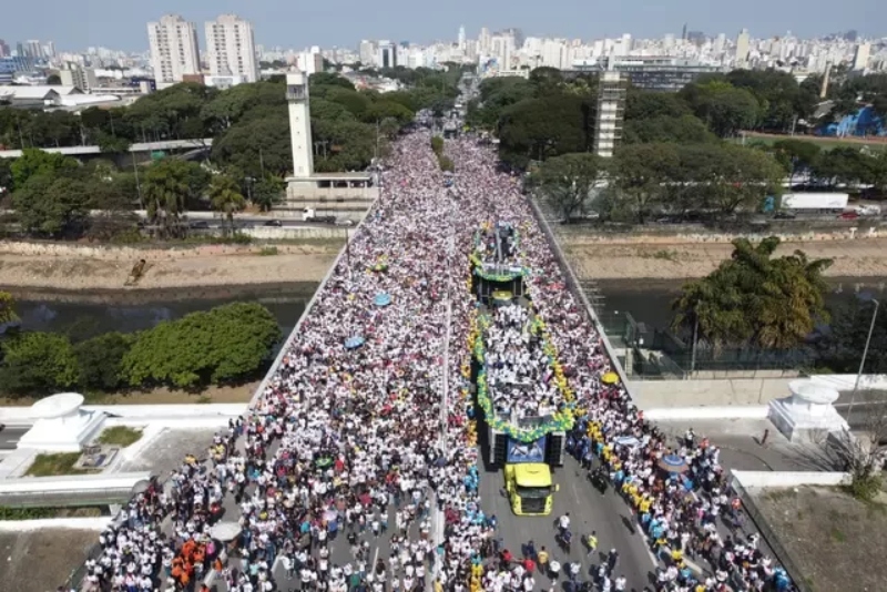 “É o 12º ano que eu venho. Realmente tem menos gente com camisa de político, está diferente. Eu creio que muitas pessoas não tenham vindo com a camisa do nosso ex-presidente porque está tendo uma perseguição política. Várias pessoas que defendem o ex-presidente têm medo.” Para ele, “seria interessante o Bolsonaro ter vindo”.