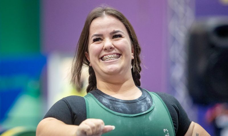 Na primeira tentativa, ela levantou 141 kg. Na sequência, tentou 146 kg e teve êxito. E, na última oportunidade, colocou 151 kg na barra e também levantou com sucesso.