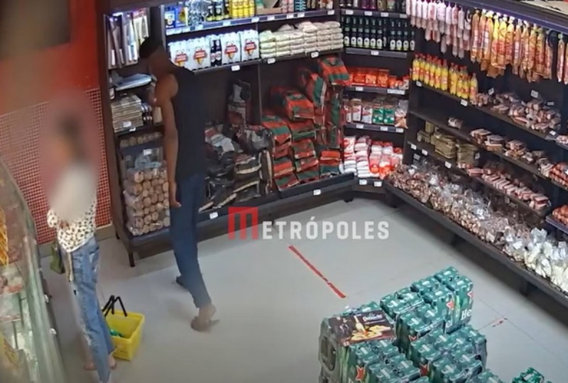 Depois de não receber dinheiro da cliente do supermercado, o homem em situação de rua a seguiu dentro do estabelecimento. Ela percebeu, então, quando o criminoso pegou uma faca em uma prateleira e abriu a embalagem do item.