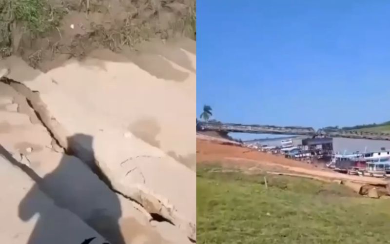 No vídeo, o morador relata a presença de rachaduras no terreno do porto de Autazes, localizado às margens do Rio Madeira, e alerta para o perigo iminente. “Vai ter o fenômeno de terra caída aqui, já está avisado. O fenômeno vai acontecer aqui também”, afirma ele, enquanto aponta as rachaduras.