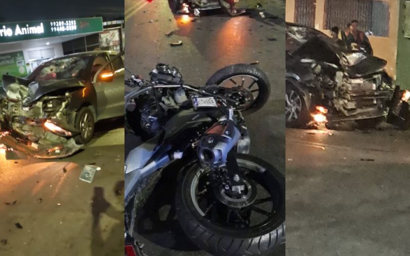 O veículo, dirigido pelo corretor de seguros e empresário José Damázio Coelho Neto, 55 anos, descia a rua Paulo Eduardo Lima quando segundo informações colidiu na frente com a motocicleta que entrou na contramão.