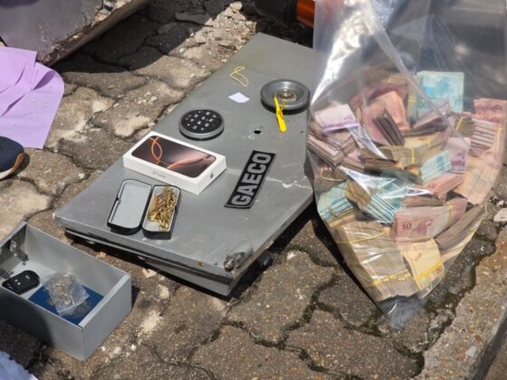 Durante as diligências, foram apreendidos três cofres, uma arma de fogo (pistola 380), diversos aparelhos eletrônicos, cheques que somando ultrapassam o valor de R$ 500 mil e uma quantia expressiva em dinheiro vivo, que precisou ser contada com auxílio de uma máquina. A Justiça também determinou o bloqueio de R$ 2,5 milhões das contas do vereador.