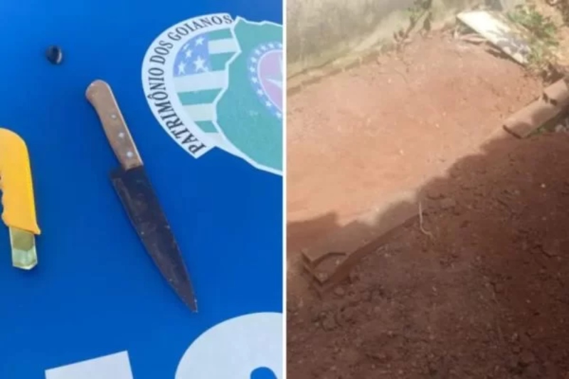 Mulher chegou a fazer uma cova no quintal de casa para enterrar a vítimaDivulgação/PMGO