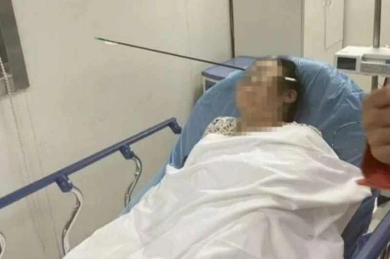 A flecha atingiu o rosto da chinesa acima das bochechas, pouco abaixo dos olhos. Encaminhada ao hospital com o objeto preso à cabeça, a mulher deu um susto nos médicos, que não souberam como agir.