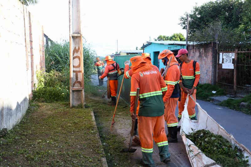 A Prefeitura de Manaus, por meio da Secretaria Municipal de Limpeza Pública (Semulsp), iniciou, nesta sexta-feira, 31/1, uma grande ação de limpeza e organização no bairro Colônia Antônio Aleixo, na zona Leste. Até sábado, 1º/2, serão realizados serviços de capinação, poda de árvores, pintura de meio-fio, varrição, lavagem de espaços públicos, educação ambiental, recolhimento de pneus, limpeza de igarapé, desarticulação de lixeiras viciadas, serviços mecanizados, coleta domiciliar e remoção de grandes objetos.