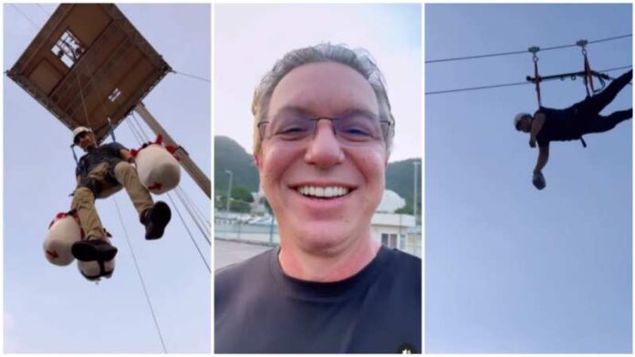 O diretor do programa mostrou o bastidor da prova, onde é possível ver cabos de aço, nos quais os participantes serão presos nas alturas. No local, alguns colaboradores descreveram a dinâmica como “radical”, “bonita e animada”.