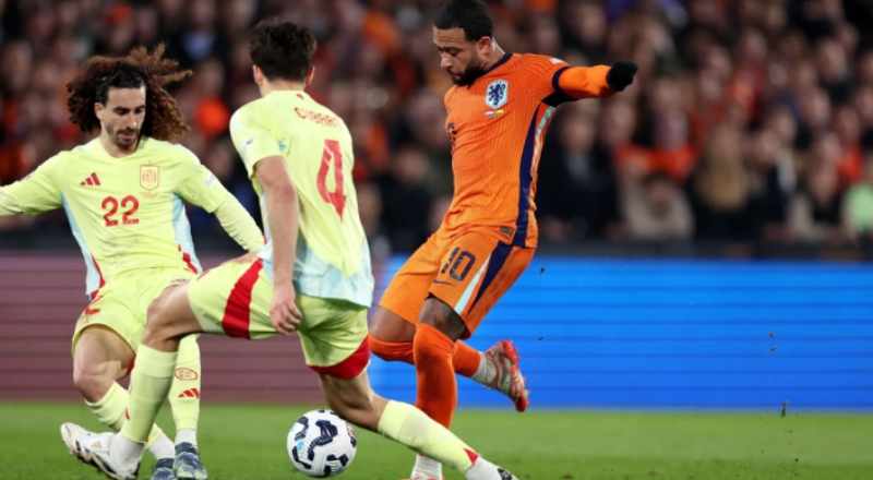 No retorno de Memphis Depay à seleção, a Holanda empatou com a Espanha, por 2 a 2, no Feyenoord Stadium, pela partida de ida das quartas de final da Nations League, nesta quinta-feira (20).