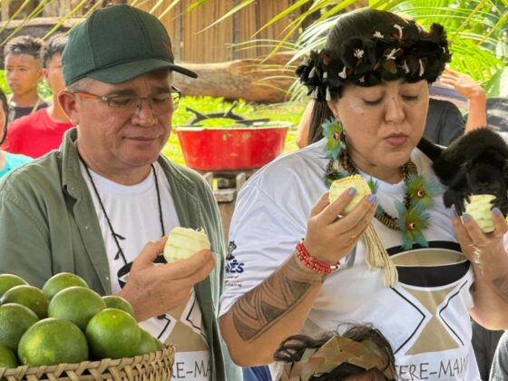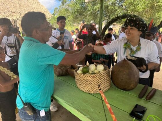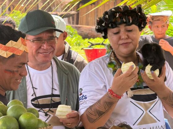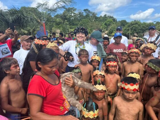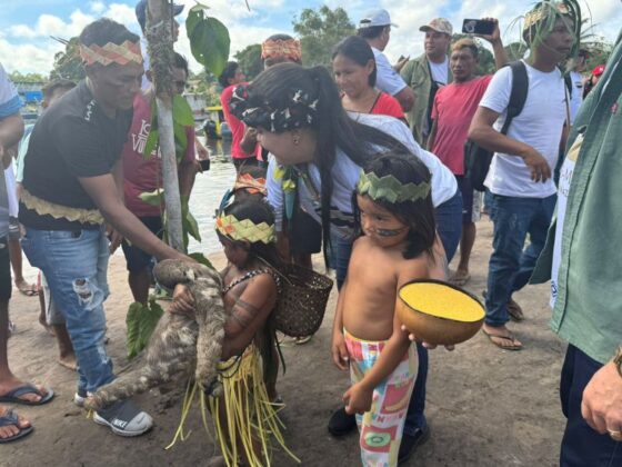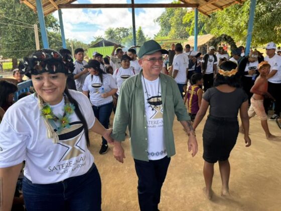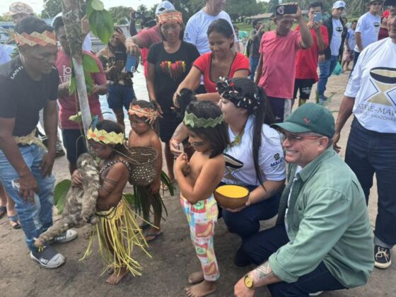 “Ao lado da liderança maior do povo sateré, Ideí Batista e tantos outros guerreiros e guerreiras da floresta reforço o meu compromisso com nossos povos originários, com os quais vivi momentos inesquecíveis, cheio de cultura força e tradição “.
