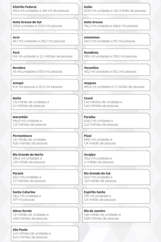 - Norte: 1,65 milhão de famílias / 5,78 milhões de pessoas