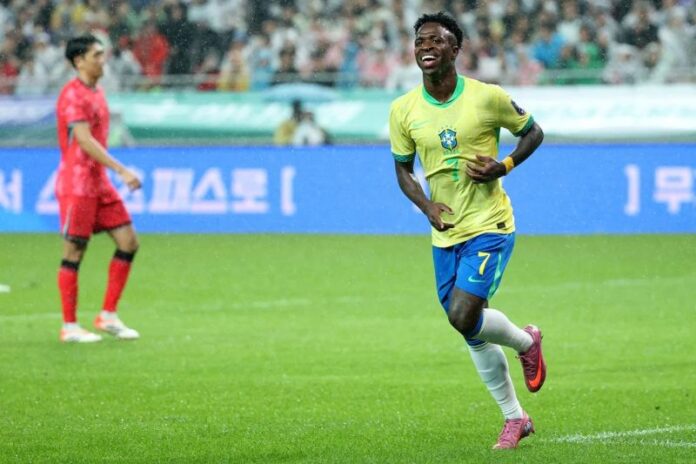 Vinícius Júnior foi convocado, nesta segunda-feira (3/11), por Carlo Ancelotti, para defender a Seleção Brasileira nos amistosos de novembro, contra Senegal e Tunísia. Após a divulgação da lista, o treinador afirmou que conversou com o atacante e deu a sua opinião sobre o momento conturbado no Real Madrid e a discussão com o técnico Xabi Alonso.