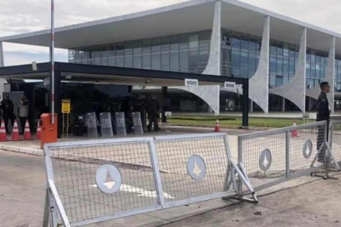 No Palácio do Planalto, o estacionamento público foi fechado com grades, e o acesso de servidores e visitantes é controlado. Viaturas da Polícia Militar do DF estão paradas em frente ao prédio, assim como militares do Exército equipados com escudos.