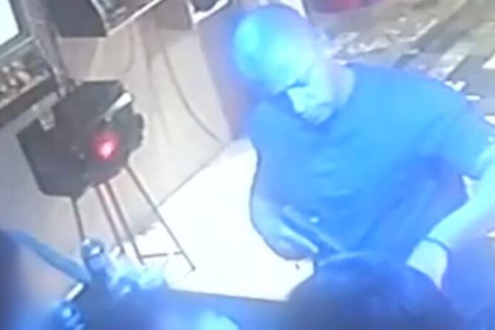 Toda a ação foi registrada por câmeras de segurança do local, que mostram o suspeito apontando uma pistola para as pessoas.