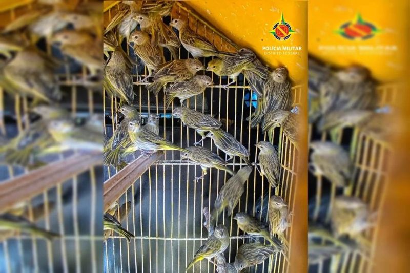 Policiais militares do Grupo Tático Ambiental (GTA) apreenderam 51 pássaros silvestres criados irregularmente em um assentamento em Sobradinho na tarde deste domingo (19).