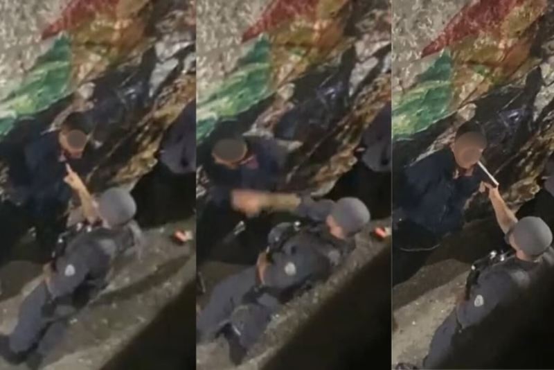 O policial também questionou “quem estava no movimento” com o homem abordado, referindo-se à venda de drogas. Ao interrogatório, durante o qual a vítima é obrigada a manter as mãos para trás, o PM incluiu agressões físicas, além das ameaças de morte.