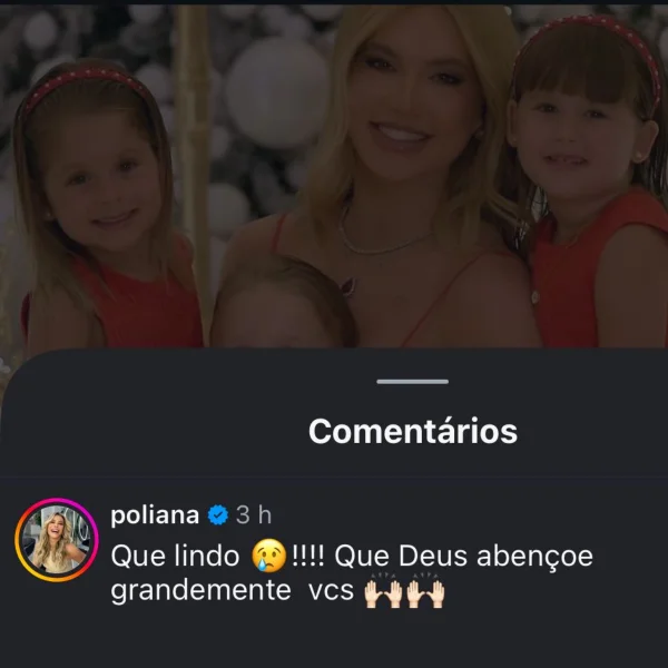 Nos comentários, Poliana Rocha, mãe de Zé Felipe e avó das crianças, fez questão de deixar uma mensagem carinhosa. “Que lindo!!!! Que Deus abençoe grandemente vocês”, escreveu a ex-sogra de Virginia.