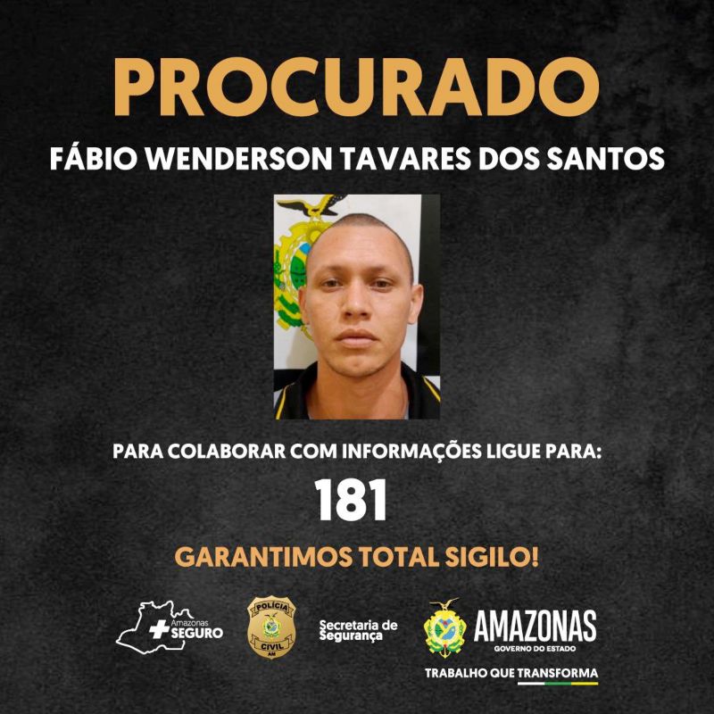 A PC-AM destaca que quem tiver informações sobre o paradeiro de Fábio Wenderson Tavares dos Santos, deve entrar em contato pelo número 181, disque-denúncia da Secretaria de Segurança Pública do Amazonas (SSP-AM).