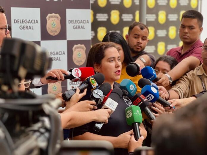 Em coletiva de imprensa, realizada nesta terça-feira (24/06), a delegada Deborah Barreiros, adjunta da DEHS, em nome da Polícia Civil, se solidarizou com a família das vítimas, que foram mortas de uma maneira brutal e covarde, na tarde de domingo (22/06), na comunidade Valparaíso, bairro Jorge Teixeira, zona leste.