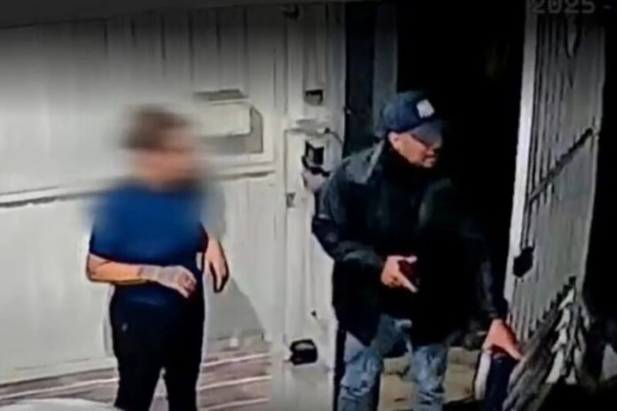 A mulher se afastou do portão para chamar o filho, deixando-o aberto. Nesse momento, o suspeito empurrou o portão, entrou na garagem e anunciou o assalto, apontando um revólver preto na direção da família. Um segundo suspeito também entrou no imóvel, enquanto um terceiro ficou no carro.