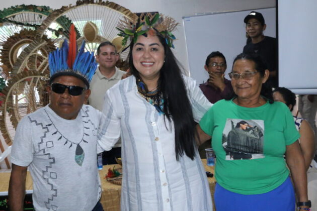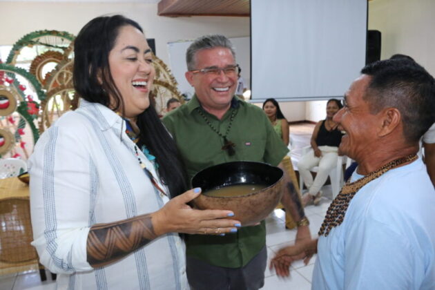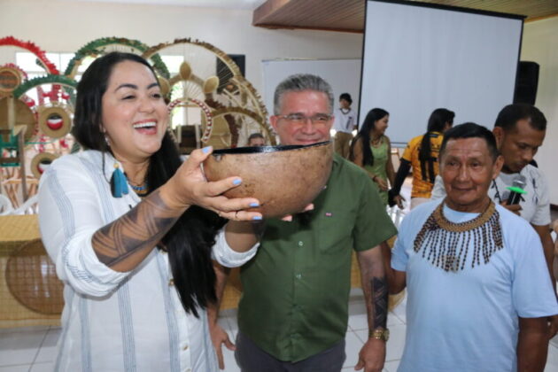 Marcelly Veras ressaltou que a nova secretaria, entregue a Eleomar, será um espaço essencialmente voltado à defesa dos interesses do povo Sateré, nas áreas de educação, cultura, esporte, lazer, economia, entre outras.