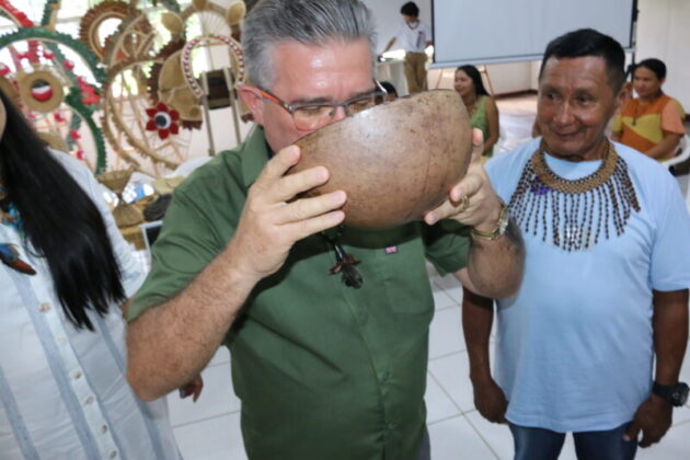 Após beber o Wara – bebida feita à base de guaraná ralado e misturado com água em uma cuia –, a prefeita do município, Marcelly Veras, anunciou que o titular da recém-criada Secretaria Indígena, aprovada durante sessão itinerante da Câmara Municipal de Maués realizada no sábado (19), na comunidade Nossa Senhora de Nazaré, será o professor Eleomar dos Santos Oliveira, do povo Sateré.