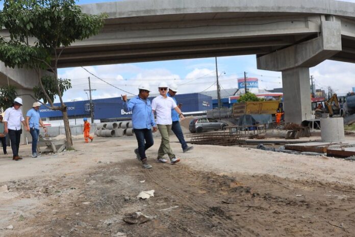 O prefeito de Manaus, David Almeida, realizou, nesta terça-feira, 13/5, mais uma vistoria técnica nas obras do complexo viário Rei Pelé, localizado na antiga rotatória do Produtor, na zona Leste da capital. Acompanhado por equipes da Secretaria Municipal de Infraestrutura (Seminf), o chefe do Executivo municipal conferiu de perto o avanço da construção, que já alcançou 95% de execução.