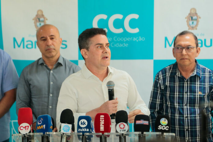 O prefeito de Manaus, David Almeida , fez, nesta segunda-feira, 23/6, uma coletiva de imprensa no Centro de Cooperação da Cidade (CCC), localizada em Adrianópolis, zona Centro-Sul da capital, onde esclareceu o impasse referente à gratuidade do Passe Livre Estudantil. David detalhou o diálogo em curso com o Governo do Estado e garantiu o direito do transporte gratuito para os alunos da rede municipal de ensino.