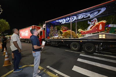 O prefeito de Manaus, David Almeida, marcou presença em mais uma caravana natalina realizada pelo Fundo Manaus Solidária (FMS), em parceria com a Solar Coca-Cola, na noite deste domingo, 16/11. A caravana, que iniciou na fábrica da empresa de bebidas, localizada no bairro Novo Israel, na zona Norte, percorreu diversas regiões da capital até chegar na orla do complexo Turístico Ponta Negra, na zona Oeste.