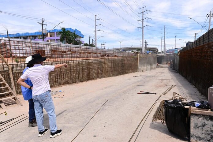 Desde a última visita do chefe do Executivo municipal ao local, no dia 28/3, a obra avançou com a concretagem do módulo 12, que recebeu 550 metros cúbicos de concreto, além da armação das paredes dos módulos que ainda não foram iniciados. Nesta terça-feira, as equipes da Seminf atuam na concretagem das paredes da trincheira nos módulos 12 e 13, armação da parede no módulo 15, construção de drenagem profunda e armação da laje onde cairá a rotatória do complexo. Também seguem os trabalhos de acabamento nas paredes já concluídas no trecho da avenida Autaz Mirim.
