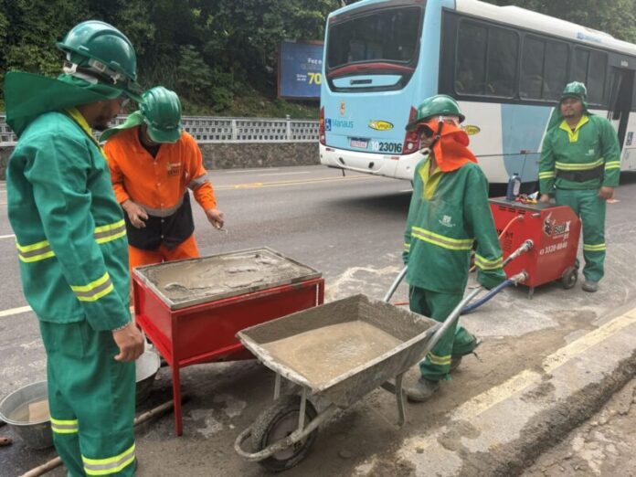 Nesta quarta-feira, 7/1, a Prefeitura de Manaus, por meio da Secretaria Municipal de Infraestrutura (Seminf), avançou para uma etapa essencial da obra realizada na encosta da avenida Mário Ypiranga Monteiro, no bairro Parque 10 de Novembro, na zona Centro-Sul da capital, a concretagem. É nesta etapa que a estrutura ganha resistência, garantindo estabilidade da encosta e mais segurança.