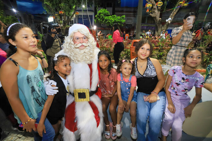 A Prefeitura de Manaus, por meio do Fundo Manaus Solidária (FMS), promoveu, nesta quarta-feira, 29/10, uma Cantata Natalina que marcou a entrega oficial da decoração de Natal na praça dos Remédios, no Centro, zona Sul. O evento, que integra a programação do projeto “Um Sonho Mágico de Natal”, reuniu famílias manauaras na rua Miranda Leão, um dos espaços mais simbólicos da cidade, oferecendo lazer e uma celebração antecipada das festividades de fim de ano.