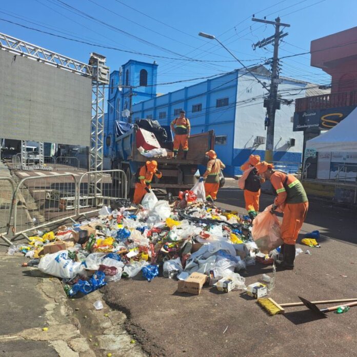Além dos espaços de festa, a Semulsp destinou equipes para locais historicamente sensíveis no pós-Réveillon, onde o volume de lixo costuma subir já nas primeiras horas do dia. Entre os pontos com atuação reforçada estão a feira da Panair, na zona Sul; feira do São José 2, na zona Leste; e a área central, especialmente na Manaus Moderna. Nessas áreas, o acúmulo de resíduos representa risco direto de contaminação e escoamento para igarapés e orla, e a retirada imediata busca evitar impactos ambientais ampliados nas semanas seguintes.