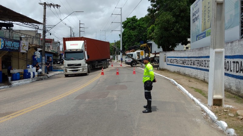 A primeira ocorrência foi registrada por volta das 10h40, na avenida Padre Agostinho Caballero Martin, bairro Compensa, zona Oeste da cidade. Uma carreta aplicada de cimento tombou após atingir um poste, interditando totalmente a via, no sentido Santo Antônio, nas proximidades do porto Trairi. Agentes do IMMU desviaram o tráfego pela avenida Brasil e atuaram no controle da situação.