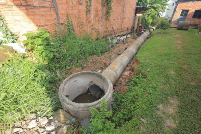 A nova estrutura, implantada em um trecho de mais de 60 metros de extensão, garante uma melhor condição para o escoamento das águas das chuvas, que passam pela caixa coletora, também em construção, seguindo até a galeria subterrânea.