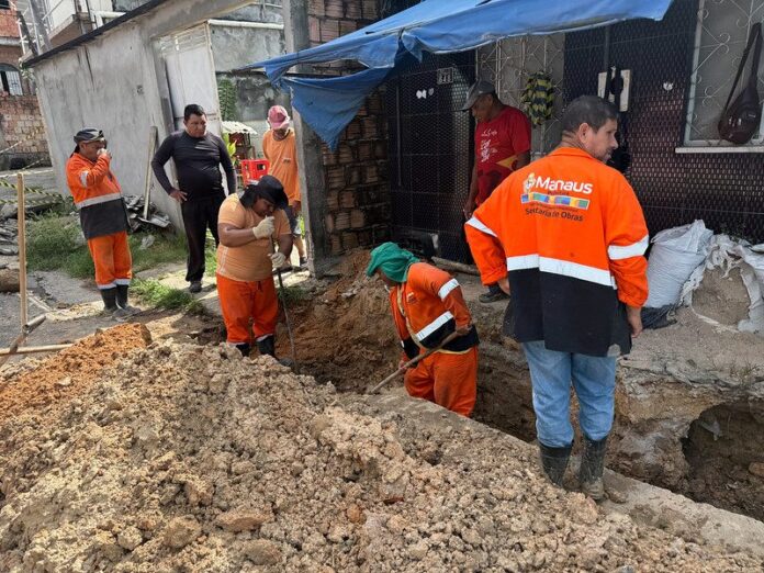 A Prefeitura de Manaus, por meio da Secretaria Municipal de Infraestrutura (Seminf), atua com celeridade na recuperação de uma rede de drenagem profunda na rua Professora Diva Ponce (antiga rua 5 de Setembro), no bairro Japiim, zona Sul da cidade. A intervenção, realizada nesta quarta-feira, 16/7, tem caráter emergencial e busca restabelecer o correto escoamento das águas pluviais na região.