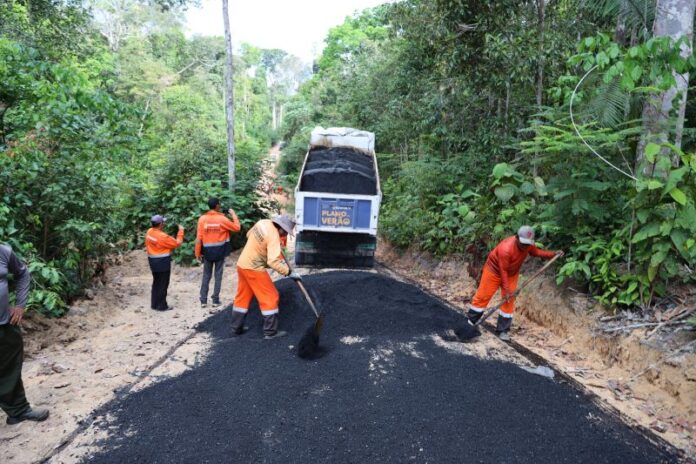 A Prefeitura de Manaus, por meio da Secretaria Municipal de Infraestrutura (Seminf), deu continuidade, nesta quinta-feira, 7/8, à pavimentação no ramal Rio Branquinho, localizado no quilômetro 67, na BR-174. As obras garantem infraestrutura de qualidade para agricultores e moradores da área.