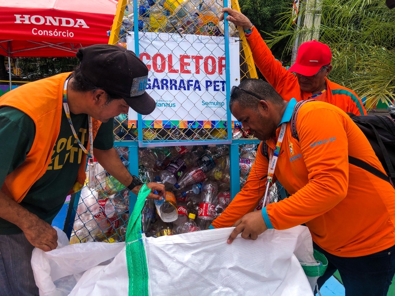 A Prefeitura de Manaus, por meio da Secretaria Municipal de Limpeza Urbana (Semulsp), fez o recolhimento de garrafas de plástico, conhecidas como PET, nesta sexta-feira, 10/6, após uma semana da instalação do novo coletor, situado no trevo do bairro Compensa, zona Oeste, entre as avenidas Compensa e Brasil. A novidade é mais um projeto de sustentabilidade voltado para a coleta seletiva.