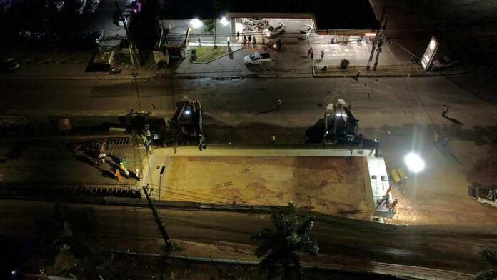 O secretário de Obras, Renato Junior, vistoriou o andamento do serviço. “São 2 horas da manhã e nós estamos aqui na rotatória do Produtor, onde o complexo viário Rei Pelé está sendo construído. A determinação do prefeito David Almeida é de que os serviços sejam executados de dia, de noite e de madrugada, a fim de acelerar a obra”, afirma.