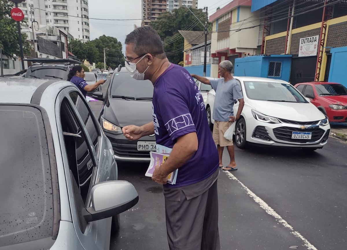 Como parte das ações da campanha “Janeiro Roxo”, a Prefeitura de Manaus, por meio da Secretaria Municipal de Saúde (Semsa), realizou uma ação de sensibilização sobre a hanseníase, na manhã desta sexta-feira, 6/1, nos semáforos da avenida Umberto Calderaro, esquina com a rua Teresina, bairro Adrianópolis, zona Centro-Sul. A atividade teve por objetivo levar informações sobre a importância do diagnóstico e tratamento, a fim de acabar com o preconceito ainda existente em relação à doença.