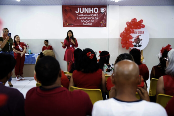 Com a temática do “Junho Vermelho”, mês de sensibilização sobre a importância da doação de sangue, a Prefeitura de Manaus executou, nesta sexta-feira, 10/6, uma atividade de socialização do projeto “Running: the color life” com servidores da Divisão Distrital Zonal (DDZ) Centro-Sul, da Secretaria Municipal de Educação (Semed). A ação visou incentivar os servidores para o ato de doar sangue, bem como seus benefícios e métodos. A atividade ocorreu no auditório da sede da DDZ Centro-Sul, no bairro Cidade de Deus, zona Norte.