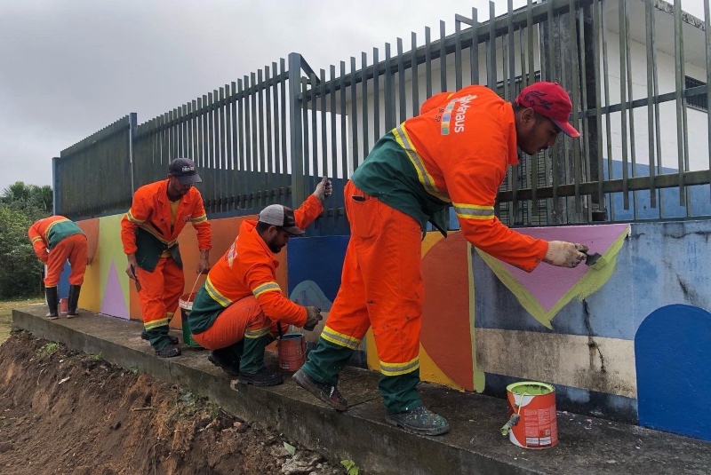 Em meio aos serviços, a Semulsp realizou a pintura do mosaico no Centro Municipal de Educação Infantil (Cmei) Professor Caio Carlos Frota de Medeiros.