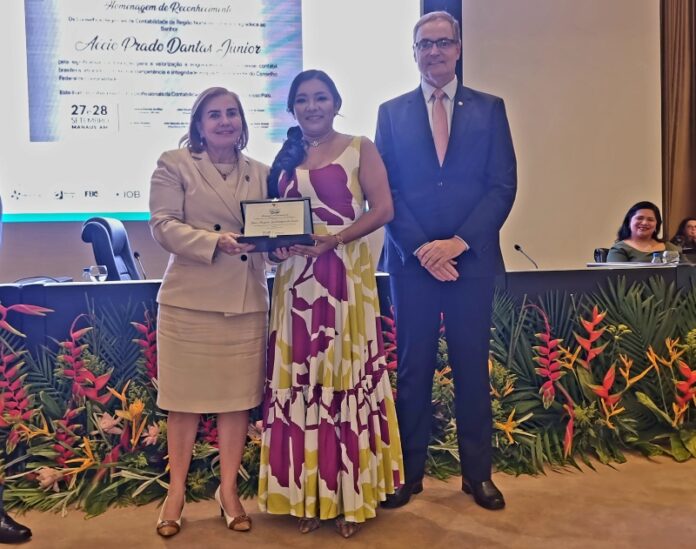 “Agradeço, muito emocionada, por também ser formada em contabilidade, faculdade que fiz antes do Direito. É mais um motivo que me faz ficar alegre em receber essa homenagem do conselho de contabilidade do nosso estado”, afirmou a vice-presidente do TCE-AM, conselheira Yara Lins dos Santos.