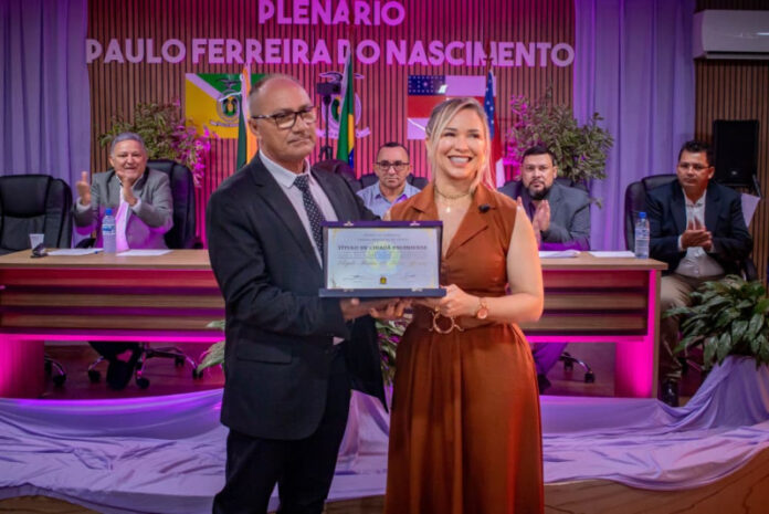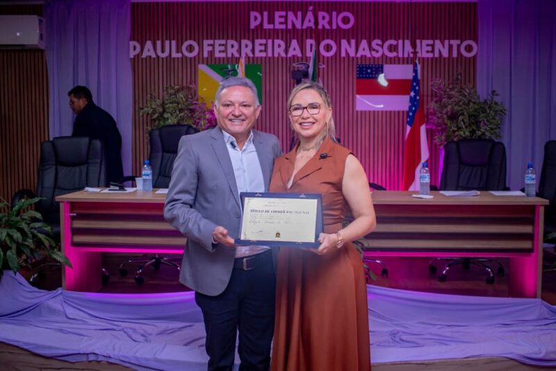 A Câmara Municipal de Pauini concedeu, na manhã da última segunda-feira (25), o título honorífico de cidadã pauiniense à primeira-dama do município, Elizete Afonso. A homenagem foi aprovada pelos vereadores como forma de reconhecer o empenho e as ações sociais desenvolvidas por ela em prol da população local.