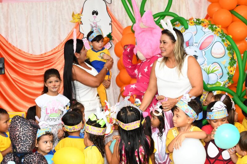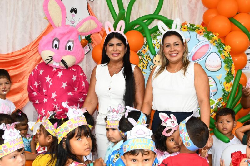 A iniciativa proporcionou momentos de diversão, distribuição de doces e atividades recreativas, levando carinho e atenção a centenas de crianças do município. Kelly Barbosa destacou a importância do cuidado com as famílias mais vulneráveis e a simbologia da Páscoa como tempo de esperança e renovação.
