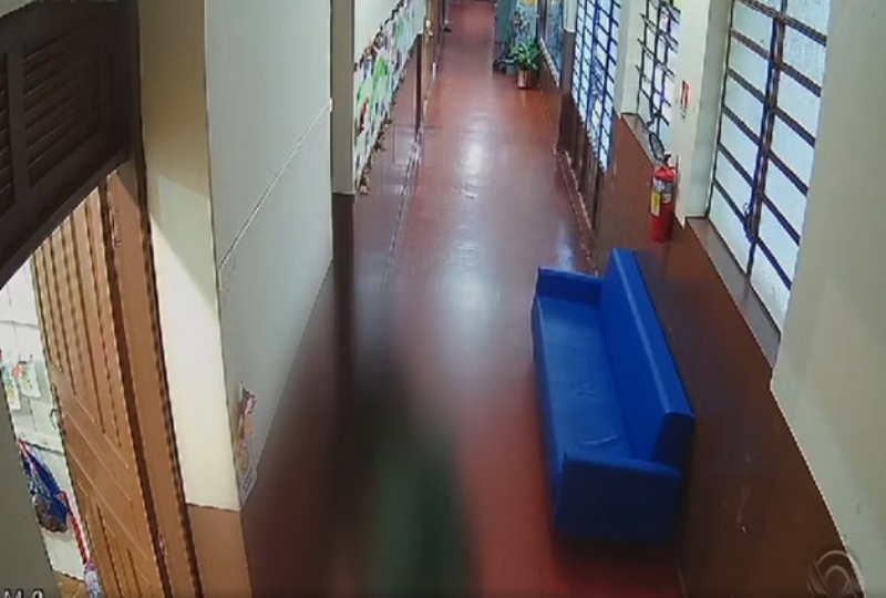 Câmeras de monitoramento da Escola Padre Gildo registraram o momento em que a professora agiu de forma agressiva com a criança, colocando-a em um ambiente escuro, após a turma deixar a sala. As imagens foram divulgadas pela RBS TV.