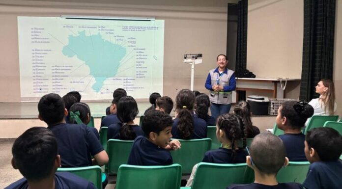 Na manhã desta quinta-feira (26/02), o Ministério Público do Estado do Amazonas (MPAM) visitou a Escola Estadual Gonçalves Dias, no bairro Dom Pedro, para ministrar uma palestra a alunos do 5º ano sobre o tratamento da água em Manaus. A atividade, no âmbito do projeto Sementes do Futuro, foi uma ação interinstitucional com a concessionária Águas de Manaus.