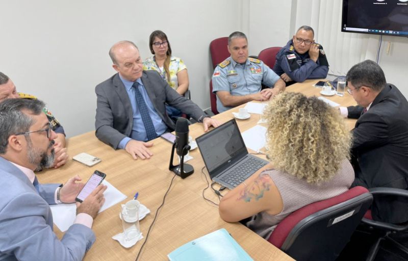 Promotores de Justiça do Amazonas, Secretário de Segurança, General Carlos Alberto Mansur, além do Comandante-Geral da Polícia Militar do Amazonas, Coronel Vinícius Almeida, reuniram nesta segunda-feira, 21, para discutir o déficit de Policiais Militares no Estado.